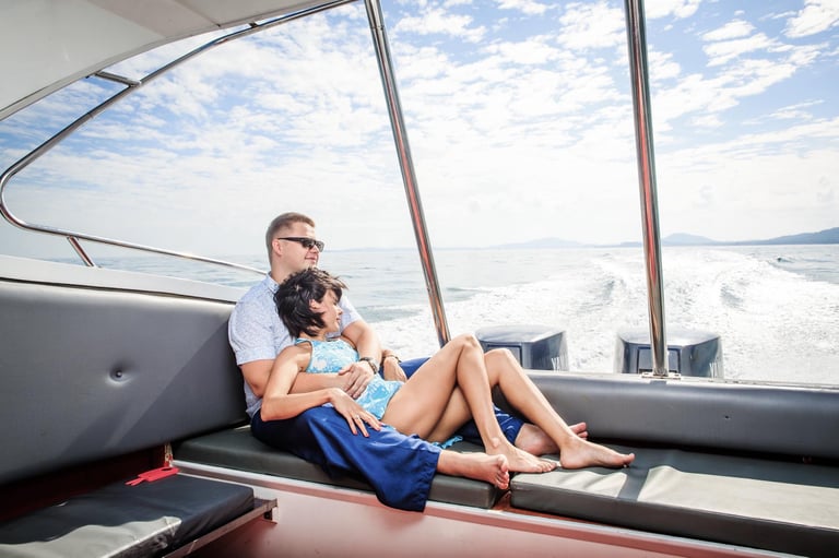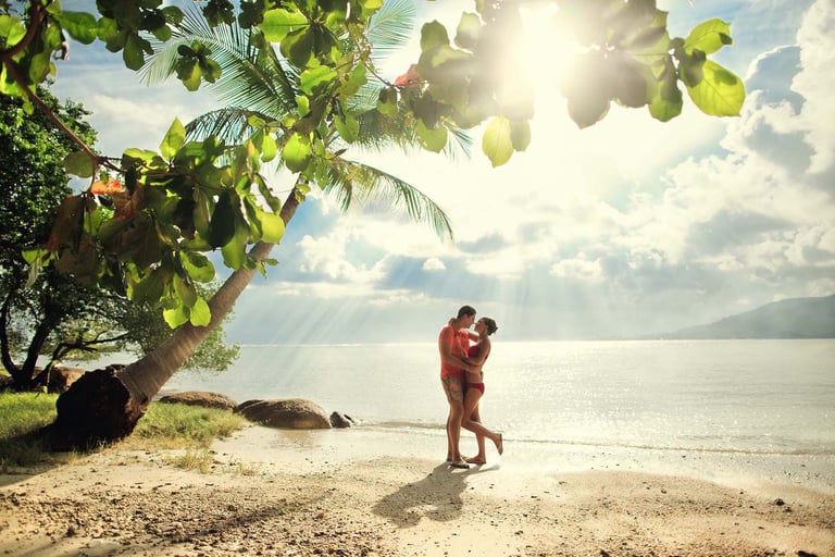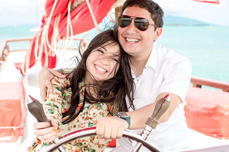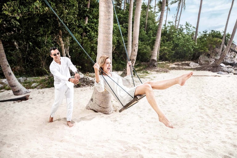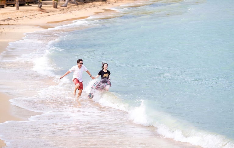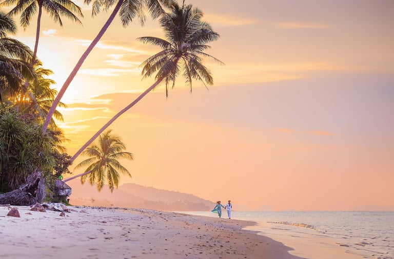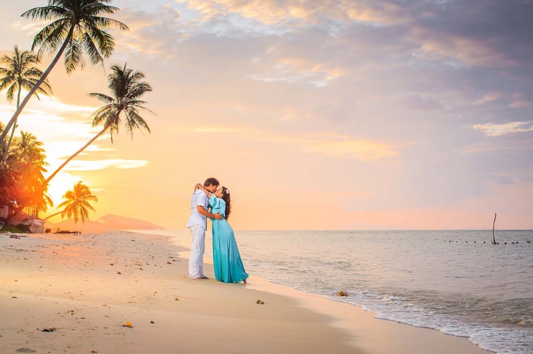 Phu Quoc часто выбирают для празднования годовщин. Прогулка по Sunset Town, съёмка на Hon Thom или кадры в уютной вилле подчеркивают атмосферу праздника.